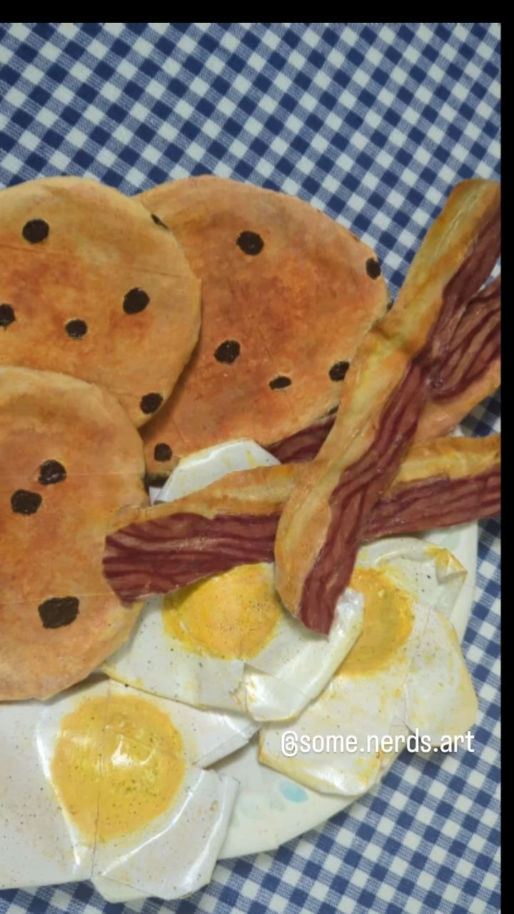 I went through a phase where I only sculpted food. Hereβs some Duct-and-masking tape Steak! I wet the masking tape to creat wrinkles that would mimic the texture of meat. I then added a coarse-texture medium to the grill marks and charred edges, and some modeling paste to the T-Bone. Realistic is key! I didnβt quite nail it. It was so early in my art career, and I had no idea what I was doing. I need to re-paint!
